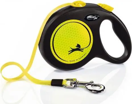 Doordat de Flexi Giant Neon Tape zo comfortabel is in gebruik, wordt het uitlaten van jouw hond nog leuker en gemakkelijker. Met deze Flexi kun je jouw hond voldoende gecontroleerde vrijheid kunt geven. De lijn kan op iedere gewenste afstand vast worden gezet, of bij een gevaarlijke situatie kun je direct ingrijpen door de rem in te drukken. Op die manier zorg je ervoor dat jouw hond niet verder kan lopen. Doordat de band geheel reflecterend is, kun je samen met jouw hond ook in het donker veilig over straat. Deze Flexi kan worden uitgebreid met een Multi Box zodat je eenvoudig poepzakjes of koekjes voor jouw hond mee kunt nemen. Inclusief verchroomde haak zodat je de lijn vast kunt klikken aan een halsband of harnas. - Geschikt voor honden tot max. 50 kg - Band lijn Afmeting: Maat L - Band 5 M