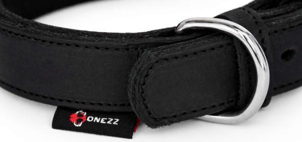 Bonezz halsband vetleer - Dubbel gestikt - Zwart - Diverse afmetingen