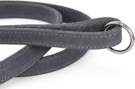 Deze grijze hondenriem van sterk vetleder is duurzaam, comfortabel en verkrijgbaar in twee lengtes: 120 cm en 180 cm. Het soepele leer en het zachte handvat zorgen voor een prettige grip, zelfs bij sterke honden. Een stijlvolle, veilige en praktische keuze voor elke wandeling.