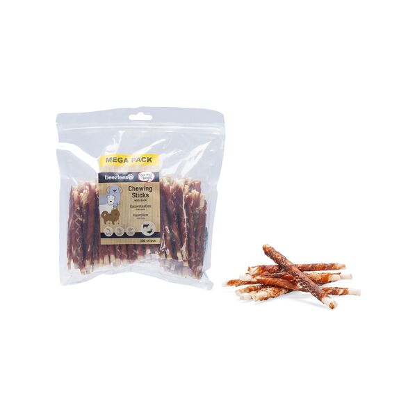 De Beeztees Kauwstaaf Kip is een heerlijke hondensnack. Deze snack bestaat uit runderhuid waar eend aan is toegevoegd. De hondensnack is doorstraald om er zeker van te zijn dat eventuele schadelijke bacteriën gedood worden. Daarnaast is de snack vrij van kleur- en smaakstoffen en suikers.