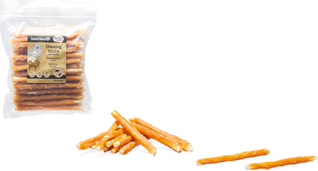 De Beeztees Kauwstaafjes Kip zijn een overheerlijke hondensnack. Deze natuurlijke snack gemaakt van runderhuid, is omwikkeld met laagjes kip, wat de snack onweerstaanbaar lekker maakt voor jouw hond.