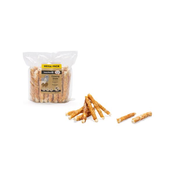 Met de Beeztees Kauwsticks met Kipsmaak geef je jouw hond een heerlijke en verantwoorde snack. Ze bevatten geen toegevoegde smaak- of kleurstoffen en geen suikers. De combinatie van runderhuid en kip maakt deze snack extra smakelijk. De sticks zijn doorstraald om schadelijke bacterien te doden.