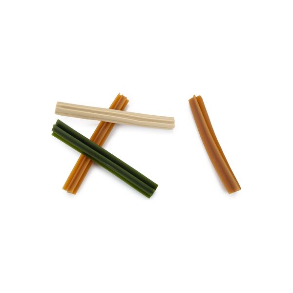 Tijdens het produceren van deze snacks, worden alleen natuurlijke kleurstoffen gebruikt en geen conserveermiddelen toegevoegd. Biergist zorgt voor een glanzende vacht en een gezonde huid. De mix bestaat uit drie varianten: mint, calcium en naturel. Mint houdt het magnesium- en ijzergehalte van jouw hond hoog, de calcium snack is speciaal bedoeld voor extra botsterkte en de naturel is een gewone snack.