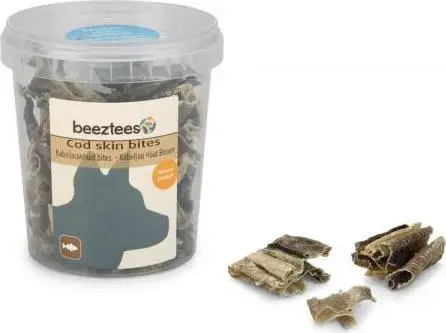 Deze Beeztees Kabeljauwhuid Bites zijn heerlijke krokante bites. Deze bites zijn ideaal om te geven als trainingssnack of gewoon als beloning. Visproducten leveren verschillende waardevolle voedingsstoffen die zeer gezond zijn voor jouw hond. Zo zorgt vis onder andere voor eiwitten van hoge kwaliteit, voor een uitstekend soort vetten en mineralen. Bovendien zit vis boordevol proteinen en gezonde vitamines voor het opbouwen van de weerstand, een betere gezondheid en een schitterende, glimmende vacht. Deze bites zijn een magere snack en zijn daardoor zeer geschikt voor honden met overgewicht. Een bijkomend voordeel is, dat deze bites tandplak- en resten verwijderd. Wie vis meeneemt in de dagelijkse voeding van de hond, zal profiteren van de verschillende vetten en zuren, waaronder Omega 3 en 6, die deze bites bevatten. - Rijk aan proteinen en gezonde vitamines - Geschikt voor honden met overgewicht Inhoud: 75 gram