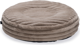 Dit mooie Designed by Lotte Ligkussen Reza Rond is een hondenkussen ontwikkeld volgens de laatste woontrends. Dit ronde kussen is te herkennen aan de dikke ribstof, hierdoor is dit kussen een ware eye-catcher binnen ieder interieur. De stof is heerlijk zacht en stevig, wat zorgt voor extra comfort bij jouw hond. De binnenhoes is voorzien van een vulling gemaakt van gerecycled polyester vezel en compleet uitritsbaar. Tevens is dit kussen voorzien van een antislip bodem aan de onderzijde. Dit zorgt ervoor dat het kussen minder makkelijk verschuift. Is de buitenhoes vies? Dan kan deze uitgewassen worden in de wasmachine op 30 graden.