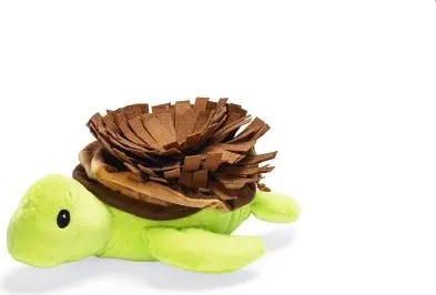 Beeztees Hide and Seek Schilli is te gek hondenspeelgoed. Deze schildpad gemaakt van pluche, is namelijk niet alleen maar een hondenknuffel, maar dient ook als denkspel voor de hond. Het schild van Schilli is namelijk ook een snuffelmat. Via het touw kan je het schild openen zodat de snuffelmat tevoorschijn komt. Leg wat heerlijke snoepjes in de snuffelmat en laat jouw hond op zoek gaan. Nog een bijkomend voordeel is dat de hondenknuffel zonder piep is. Het aanbieden van Beeztees Hide and Seek Schilli zal bijdragen aan het mentaal stimuleren van jouw hond. - Gemaakt van zacht pluche - Inclusief snuffelmat - Denkspel - Zonder piep - Mentale stimulatie Afmeting: 31x26x11,5 cm