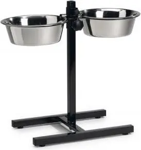 Wil je graag het eten en drinken van jouw hond naast elkaar hebben staan. Dan biedt de Beeztees Standaard met 2 RVS bakken een uitkomst. Deze RVS bakken glanzen mooi, waardoor ze net even een luxere uitstraling krijgen. Bovendien bevat de standaard aan de onderkant rubberen dopjes, die dienen als antislip en jouw vloer beschermen tegen krassen. De RVS bakken zijn vaatwasbestendig. - Gemaakt van metaal + 2 RVS bakken - Antislip - RVS bakken zijn vaatwasbestendig - Verkrijgbaar in 5 maten Afmetingen: - diameter bakje 13 cm - 2x380 ml (geschikt voor pups en kleine honden) - diameter bakje 16 cm - 2x810 ml (geschikt voor pups en kleine honden) - diameter bakje 20 cm - 2x1630 ml - diameter bakje 25 cm - 2x2530 ml - diameter bakje 28 cm - 2x4050 ml