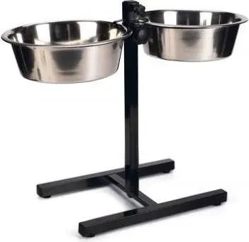 Wil je graag het eten en drinken van jouw hond naast elkaar hebben staan. Dan biedt de Beeztees Standaard met 2 RVS bakken een uitkomst. Deze RVS bakken glanzen mooi, waardoor ze net even een luxere uitstraling krijgen. Bovendien bevat de standaard aan de onderkant rubberen dopjes, die dienen als antislip en jouw vloer beschermen tegen krassen. De RVS bakken zijn vaatwasbestendig. - Gemaakt van metaal + 2 RVS bakken - Antislip - RVS bakken zijn vaatwasbestendig - Verkrijgbaar in 5 maten Afmetingen: - diameter bakje 13 cm - 2x380 ml (geschikt voor pups en kleine honden) - diameter bakje 16 cm - 2x810 ml (geschikt voor pups en kleine honden) - diameter bakje 20 cm - 2x1630 ml - diameter bakje 25 cm - 2x2530 ml - diameter bakje 28 cm - 2x4050 ml