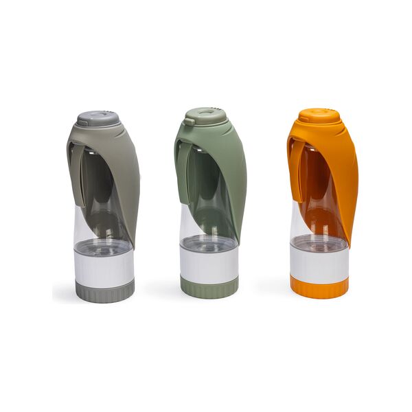 Met Beeztees Drinkfles Nel kun je altijd schoon drinkwater meenemen voor jouw hond. Deze honden drinkfles is multifunctioneel. Naast dat de fles een geïntegreerde waterbak heeft, is er aan de onderzijde een extra compartiment toegevoegd waar je hondensnacks in kunt bewaren. Om jouw hond te laten drinken, klap je het silicone blad naar boven. Vervolgens druk je op de ronde knop bovenop de dop in en het water zal in het blad stromen. Is jouw hond klaar met drinken? Dan kun je het water weer terug in de fles laten lopen om verspilling tegen te gaan. Hierna druk je het knopje aan de zijkant in, zodat je de fles weer afsluit. Het snackbakje vul je eenvoudig door deze los te draaien van de fles. Wanneer je jouw hond onderweg wilt belonen, draai je aan de knop aan de onderzijde waarna je wat snacks uit het bakje kan halen.