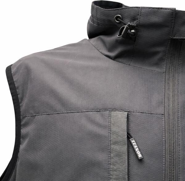 De bodywarmer is afgewerkt met een opstaande kraag met verstelbaar koord, stevige ritsen en praktische zakken met ritssluiting. Subtiele details en het Bonezz logo geven het geheel een stoere en professionele look.