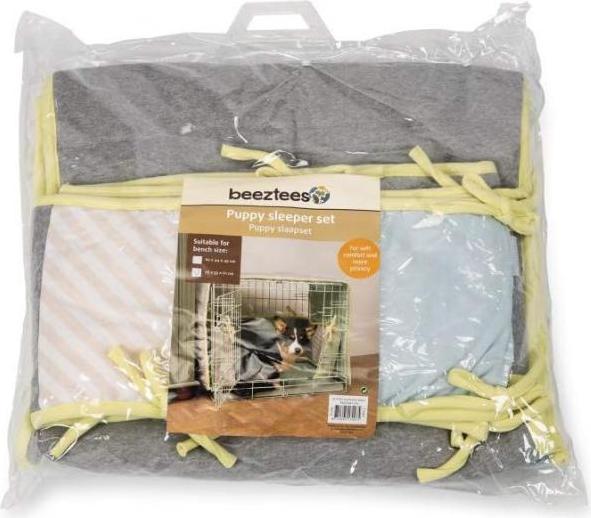 Heb jij een puppy en wil je de bench iets comfortabeler aankleden? Dan is deze beeztees puppy sleeper set perfect. Het bestaat uit 2 onderdelen. Een deel plaats je over de bench en een deel in de bench. Zo maak je eenvoudig een fijn en veilig plekje voor jouw hond. Middels touwtjes knoop je de delen eenvoudig aan de bench vast zodat het goed blijft zitten. Zo is het aan de ene kant lekker zacht om tegenaan te liggen en aan de andere kant maakt het de bench wat donkerder. Gemaakt van zacht joggingsstof.