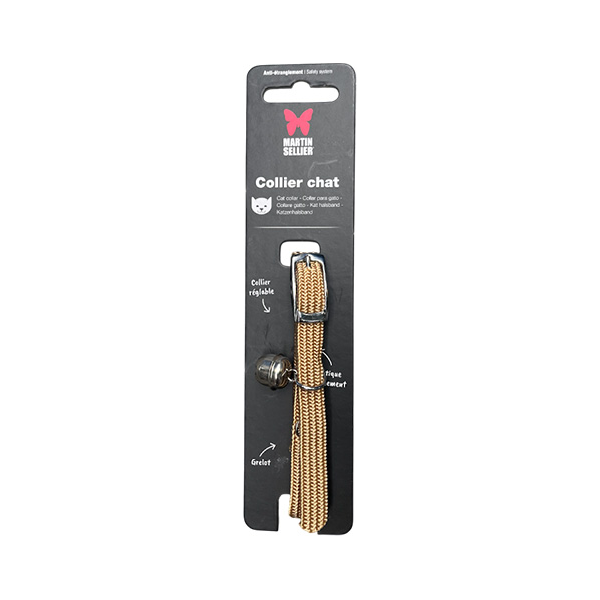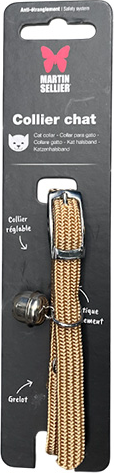 Leuk kattenhalsbandje van het merk Martin. Er is een belletje aanwezig en een handige sluiting. In de kleur beige.