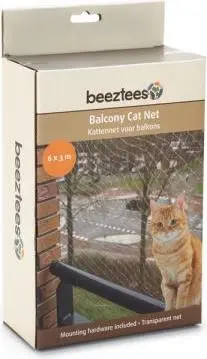 Het Beeztees Kattennet voor het balkon beschermt, zoals de naam het al zegt, jouw kat tegen het vallen van het balkon. Dit kattennet is gemakkelijk te bevestigen en is bovendien transparant van kleur. Hierdoor valt het net nauwelijks op, maar kan je jouw kat wel met een gerust hart alleen laten op het balkon. - Inclusief bevestigingslijn en haken - Breedte van de mazen: 3x3 cm - Verkrijgbaar in 5 verschillende maten Afmetingen: - 2x1,5 meter - 3x2 meter - 4x3 meter - 6x3 meter - 8x3 meter