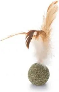 De Beeztees Catnip met veren is leuk speelgoed voor jouw kat. Jouw kat zal het leuk vinden om met de catnip bal en de veren te spelen. Veel katten (ongeveer 2/3 van alle katten) reageren positief en euforisch op catnip. Het euforische effect wordt veroorzaakt door een bepaald stofje in catnip, dat geen kwaad kan voor de kat. Je kunt jouw kat een catnip speeltje geven als verrijking, om haar lekker te laten spelen en genieten. Daarnaast kun je jouw kat ook een catnip speeltje geven als hij of zij gestrest is. De werkende stof in catnip zorgt ervoor dat de meeste katten ontspannen worden. - De bal is gemaakt van catnip Diameter catnip:12 cm
