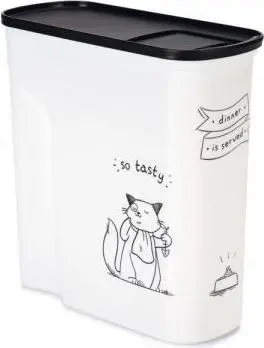 De Curver Voedselcontainer is een zeer handige container voor het bewaren van kattenbrokjes. Met deze container heb je nooit meer een zak brokjes in de schuur of kelder, maar is het netjes opgeborgen in een fraai uitziende container. De container bevat een handige opening aan de bovenkant, zodat je de brokjes gemakkelijk in een kattenvoerbak kunt schenken. Leuk detail: voorzien van een grappige cartoon - Verkrijgbaar in 2 verschillende maten Inhoud: 2L - 6L