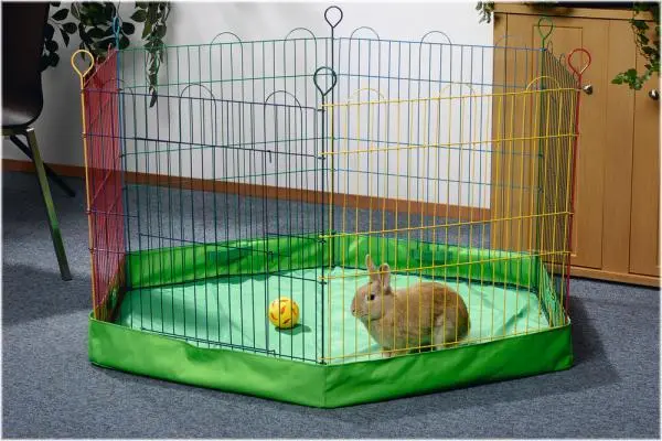 De Beeztees Bodemhoes voor Konijnenren 0275603 beschermd de vloer van jouw huis van beschadigingen. Deze nylon bodemhoes is gemakkelijk te bevestigen aan de konijnenren, waarna je jouw huisdier erin kan zetten zodat hij of zij lekker kan spelen. Met dit product verminder je de kans dat er iets gebeurd met jouw vloer. - Geschikt voor de Beeztees Konijnenren 275603 Afmeting: 105x105x10 cm