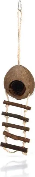 Het Beeztees Kokosnoothuisje met ladder is het leukste huisje dat je ooit hebt gezien. Jouw kleine knager kan dit huisje eenvoudig bereiken door de ladder die eraan is bevestigd. De kokosnoot kan worden bevestigd aan het traliewerk en geeft een leuke twist aan de knaagdierkooi. Er is gebruik gemaakt van natuurlijke materialen, waardoor het onschadelijk is voor jouw knaagdier. Afmeting: 30 cm