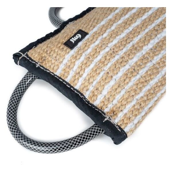 Het Julius-K9 bijtkussen is gemaakt van duurzaam jute en heeft drie stevige handvaten van tuinslang voor optimaal grip en comfort tijdens training. Het ruime bijtoppervlak is ideaal voor het ontwikkelen van bijtvaardigheden bij honden van alle groottes. Dit hoogwaardige kussen biedt een uitstekende prijs-kwaliteitverhouding en is perfect voor intensieve en professionele trainingssessies.
