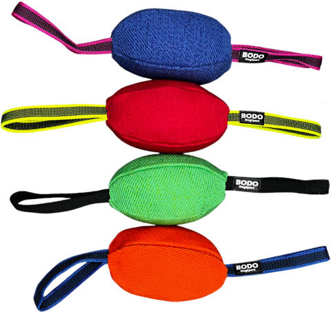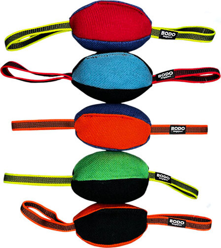 Een bijtbal met leuke vorm, namelijk een rugbybal. Dit is een keer wat anders dan de standaard rechthoekige bijtrollen. De bijtbal is van het merk BODO DogSports. Zij staan voor hoogwaardige trainingsmaterialen voor honden. De bijtrol rugbybal is ideaal te gebruiken tijdens trainingen met je hond, geschikt voor diverse doeleinden. Het kan namelijk gebruikt worden als beloning tijdens het trainen, maar je kunt het ook ideaal gebruiken voor het aanleren van commando's.