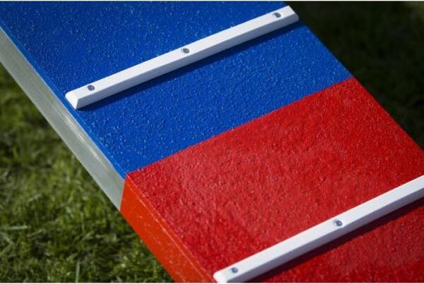 De afschroefbare voeten - eveneens van aluminium - met gelaste verbindingen zijn in hoogte verstelbaar en geoptimaliseerd voor stabiliteit. Extra gewichten met zandzakken zijn mogelijk om een exact dezelfde positie voor alle deelnemers aan toernooien te garanderen. Verstelbare steunen in het op- en afstapgebied zorgen voor een soepele, trillingvrij op- en afstap. Fastlock-verbindingen van de 3 treden zorgen voor een 100% stabiele overgang.