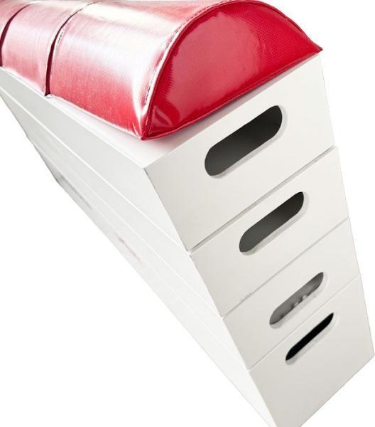 Meerdelige constructie van integrale schuimpanelen. Wanddikte 20 mm, aan de bovenkant bevinden zich halfronde elementen die bij aanraking kunnen worden weggeslingerd. In hoogte verstelbaar voor mini - midi - maxi.