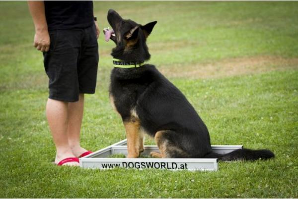 Stabiele, weerbestendige aluminium constructie. Ideaal product bij hondentraining voor het aanleren en verfijnen van een exacte stoel, oefeningen voor staan en afliggen en voor de ideale voet- of blafpositie op de schuilplaats.