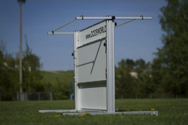 Traploos in hoogte verstelbare springhorde, zonder gereedschap in hoogte verstelbaar van 50 tot 110 cm. De hoogteverstelling gebeurt met knevelschroeven en glijblokken en is daardoor zeer lichtlopend.