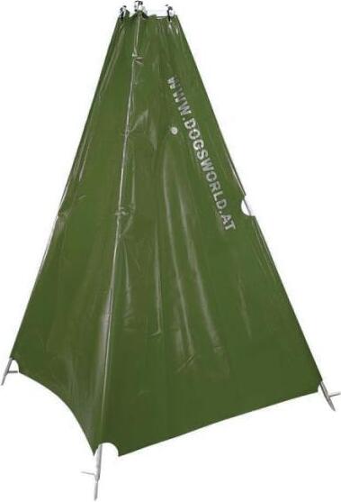 Vervaardigd uit vier stevige aluminium staven, afgedekt met kleurvast en weerbestendig kunststof zeildoek. Uitgerust met grondpennen voor een veilige stand. Twee ronde openingen in het midden waar de helper op kan letten. In het midden deelbaar voor ontsnapping, afsluitbaar met klittenband.