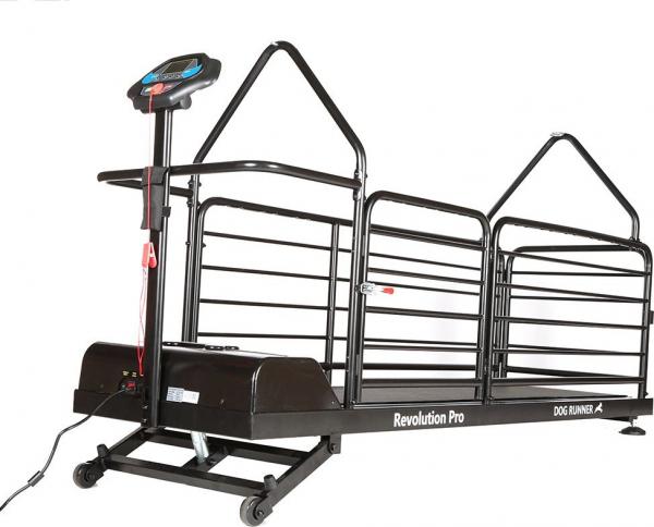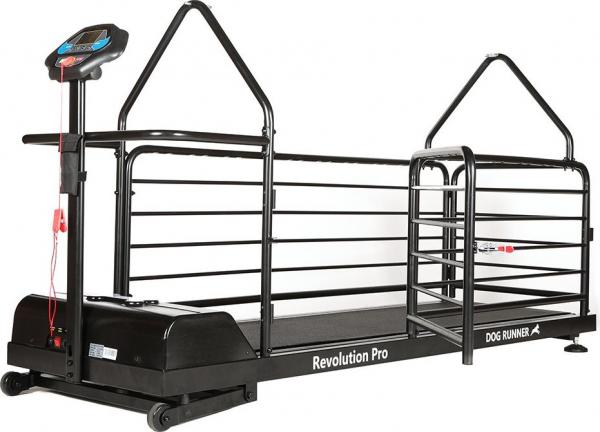 De Revolution Pro is ontworpen voor professionele trainers, therapeuten of voor echte hondenliefhebbers. Een gloednieuw ontwerp, een krachtigere motor (stiller!), afstandsbediening (echt handig!), automatische helling, gemakkelijke toegang en uitgang (nieuwe zijuitgang), 3 zware laklagen die moeten beschermen tegen krassen en corrosie voor een lange tijd. We constateren dat we net de Dog Runner loopbanden naar een hoger niveau hebben getild.