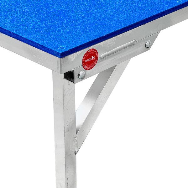 De reddingshondentafel bestaat uit een gelaste aluminium constructie met een geklonken kunststof integraalschuimplaat, die is voorzien van een antislipcoating van hoge industriële kwaliteit. Door de gebruikte materialen is de tafel absoluut stabiel, robuust en duurzaam met een laag gewicht.