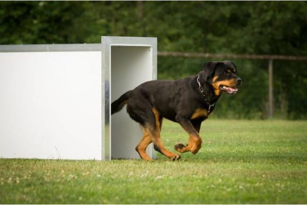 Tweedelige massasporttunnel van kunststof integraalschuimpanelen, omzoomd met aluminium profielen. De materialen zorgen voor een absoluut stabiele en toch lichte tunnel. Door de uitwendige schroefverbinding van de beide tunnelhelften of randbescherming zijn er geen uitstekende delen of scherpe randen aan de binnenzijde.