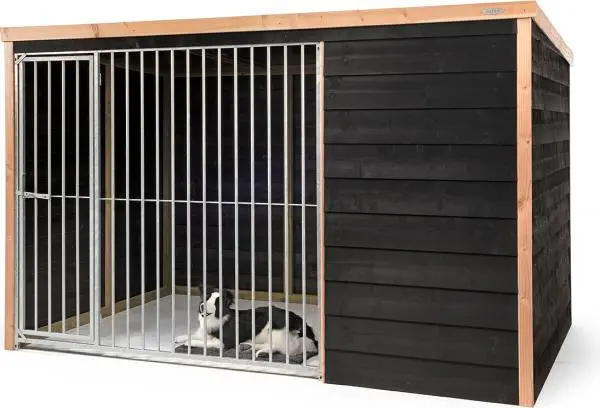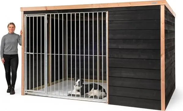 - Douglas hondenkennel met zwarte potdekseldelen