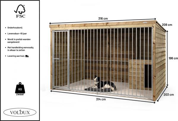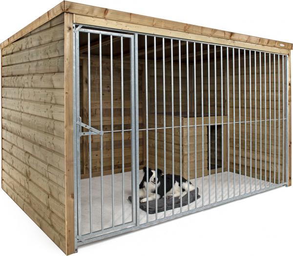 Hondenkennel Max is een mooie, ruime buitenkennel. Het biedt je hond(en) een fijne en comfortabele plek om te verblijven. Het hok bevat drie dichte wanden en een voorpaneel. Zo heb je vanaf de voorkant altijd zicht op de hond én is jouw hond goed beschermt tegen de wind.