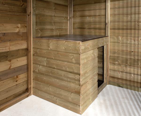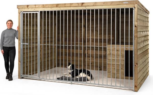 De hondenkennel is gemaakt van geïmpregneerd grenenhout. Het voordeel hiervan is dat de kennel wordt beschermd tegen verschillende weersomstandigheden. Daarnaast biedt grenenhout een levensduur van 10-15 jaar en dus kun jij er lang van genieten. Een periodieke schoonmaakbeurt is altijd handig, verder is er geen onderhoud nodig.