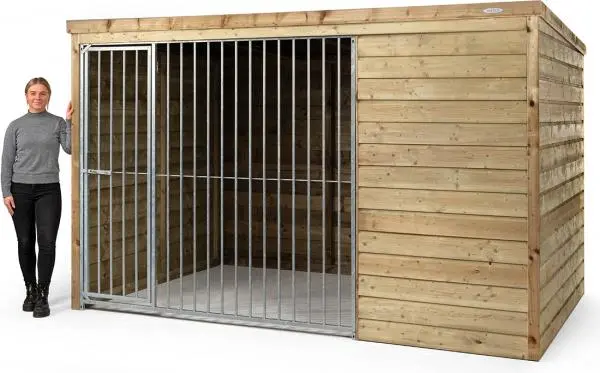De hondenkennel is gemaakt met een sterk, behandeld en geïmpregneerd houten frame. Het voordeel hiervan is dat de kennel wordt beschermd tegen verschillende weersomstandigheden. Daarnaast maakt het materiaal de kennel uitermate geschikt voor langdurig buitengebruik.