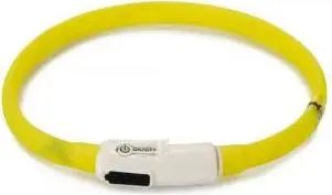 De Beeztees Safety Gear Dogini hondenhalsband is een siliconen halsband met usb aansluiting. De Dogini hondenhalsband geeft licht, waardoor je jouw hond eenvoudig in het donker kan herkennen en dat ook anderen jouw trouwe viervoeter kunnen zien. De verlichting van de halsband heeft drie standen: langzaam knipperend, snel knipperend en een continue verlichting. Zodra de verlichting verzwakt of het helemaal niet meer doet, kan je de halsband gemakkelijk opladen via de usb aansluiting. Deze halsband kan je zelf op maat knippen, waardoor het geschikt voor iedere hond. Let op: aan deze hondenhalsband kan geen hondenriem worden bevestigd. - Verkrijgbaar in 7 kleuren en 2 maten Afmetingen: - 35 cm x 10 mm - 70 cm x 10 mm