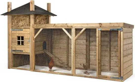 Op zoek naar een kippenverblijf die niet alleen praktisch is, maar ook een echte toevoeging in je tuin? Hooiberg Sofie is dé oplossing! Dit verblijf bestaat uit een hooizolder, een nachthok en een ren. De kippenren is in zijn geheel overdekt, zo blijven de kippen altijd beschermt tegen diverse weersinvloeden. Middels het trapje kunnen de kippen eenvoudig in- en uit het nachthok gaan