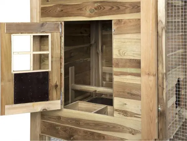 Dan is een Voldux verblijf voor u de juiste keus. Deze prachtige hooiberg wordt handgemaakt door gespecialiseerde vakmannen in Nederland die zorgen voor een perfect resultaat. Het verblijf wordt volledig gemaakt van geïmpregneerd hout. Dit maakt het hok onderhoudsvrij en zeer geschikt voor buiten. Het hok is voorzien van een binnen verblijf. Door middel van een deur is dit verblijf goed te bereiken. In het nachthok staat een legbak, waardoor de eieren gemakkelijk te pakken zijn. Het dak wordt gemonteerd afgeleverd, het overige in panelen die door ons zo ver als mogelijk zijn voorbereid. Wij voorzien u van alle bevestigingsmaterialen zodat het erg eenvoudig te monteren is.