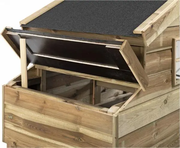 Dit kippenhok wordt handgemaakt door gespecialiseerde vakmannen van Voldux die zorgen voor een perfect resultaat. Heeft u interesse in een verblijf dat 10 tot 15 jaar mee gaat? Dan is een Voldux verblijf voor u de juiste keus. Het verblijf wordt volledig gemaakt van geimpregneerd hout. Dit maakt het hok onderhoudsvrij en zeer geschikt voor buiten. Het hok is voorzien van een binnenverblijf. Door middel van een deur is dit verblijf goed te bereiken. Aan het binnenverblijf bevindt zich een legnest. Het dak is te openen waardoor de eieren gemakkelijk te pakken zijn. Het kippenhok staat volledig in elkaar en hoeft daardoor enkel op zijn plaats gezet te worden.