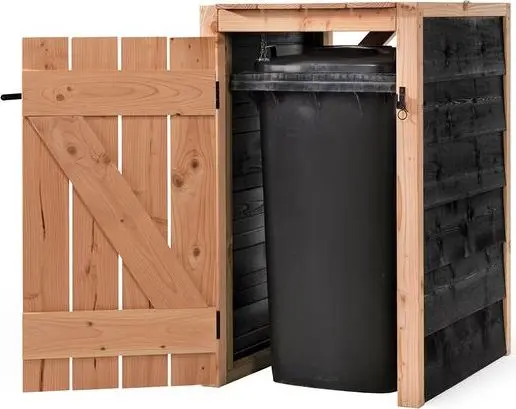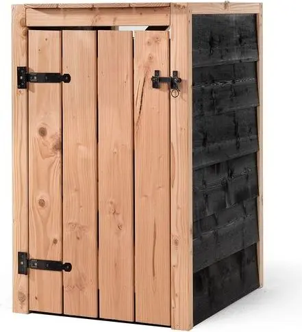Een kliko op de oprit of ergens in de tuin, het geeft vaak niet zo'n chique uitstraling. Met deze kliko ombouw berg jij je kliko eenvoudig op achter een mooie, houten constructie. De vuilcontainer ombouw is gemaakt van Douglas hout en daarbij afgewerkt met zwart potdeksel delen. De combinatie hiervan zorgt voor een echt luxieuze uitstraling en maakt het een aanwinst voor je tuin. Ook het hang- en sluitwerk is in een zwarte kleur.
