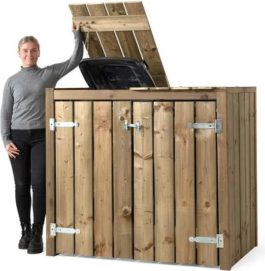 Een kliko op de oprit of ergens in de tuin, het geeft vaak niet zo'n chique uitstraling. Met deze kliko ombouw berg jij je kliko's eenvoudig op achter een mooie, houten constructie. De klikokast is gemaakt van geïmpregneerd hout en voorzien van gegalvaniseerd hang- en sluitwerk. Het gebruik van hoogwaardige materialen maakt het onderhoudsvrij en dus kun jij er een lange tijd van genieten zonder er veel aan te hoeven doen.