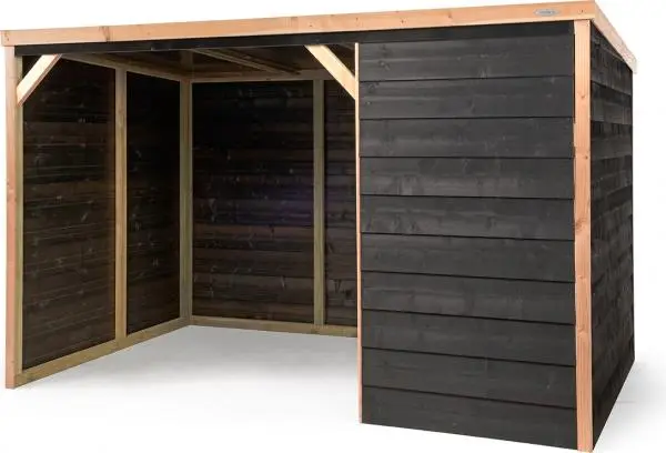 Het dak van de stal is schuin aflopend en voorzien van sterk dakleer. Hierdoor ontstaat er optimale afwatering op de stal. Zo staan jouw dieren op momenten dat het regent veilig en droog. De houten stal is voor 3,5 zijdes dicht, wat ervoor zorgt dat bij een klein stuk de totale wind wordt tegengehouden.