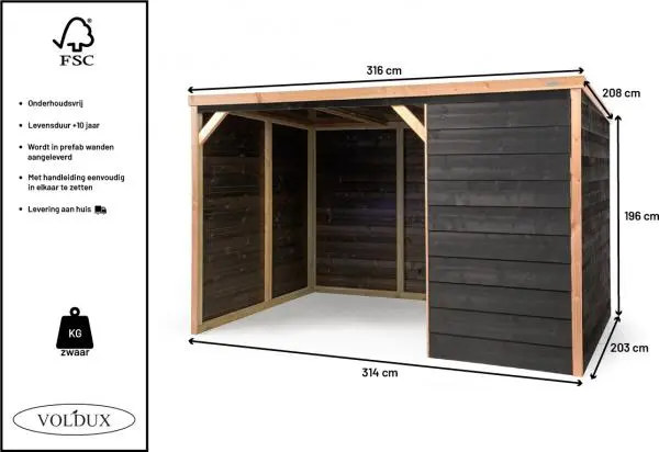 Het verblijf wordt geleverd in panelen, daarom wordt er gebruik gemaakt van eigen bakwagens en chauffeurs van het desbetreffende merk Voldux. Het verblijf zal binnen 7 werkdagen na de besteldatum worden geleverd. Je wordt op tijd ingelicht over afleverdatum- en tijdstip waarop je het kunt verwachten, door de klantenservice.