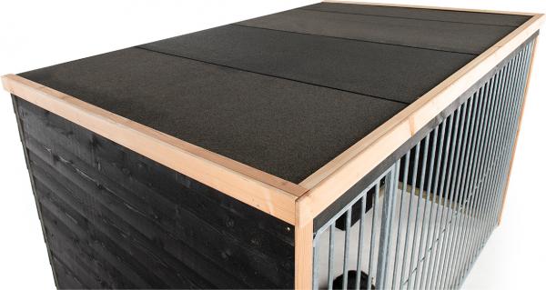 Het dak van de stal is schuin aflopend en voorzien van sterk dakleer. Hierdoor ontstaat er optimale afwatering op de stal. Zo staan jouw dieren op momenten dat het regent veilig en droog. De houten stal is voor 3 zijdes dicht, waardoor de voorkant dus open is. Zo heb jij altijd goed zicht en genieten jouw diertjes altijd van het zonlicht dat binnenkomt.