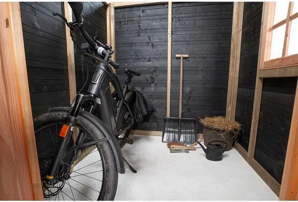 Extra opbergruimte nodig in je tuin? Tuinberging Kasper is een goede oplossing. Deze afgesloten bergruimte is gemaakt van Douglas hout in combinatie met zwarte potdeksel delen. Hiermee is de berging onderhoudsvrij én bied het een lange levensduur. Een de zijkant is een raam aanwezig, dit zorgt voor lichtinval. De deur zit aan de voorzijde en kan worden afgesloten middels een schuifslot.
