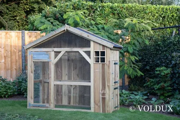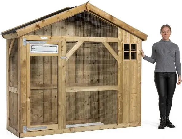 Deze volière is een echte aanwinst voor in je tuin. Volledig gemaakt van geïmpregneerd hout, wat meerdere voordelen met zich meebrengt. Allereerst zorgt het ervoor dat het verblijf erg onderhoudsvrij is, zo heb jij er weinig omkijken na. Daarnaast maakt het het verblijf zeer geschikt voor (langdurig) buitengebruik.