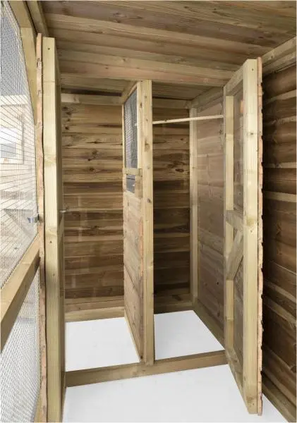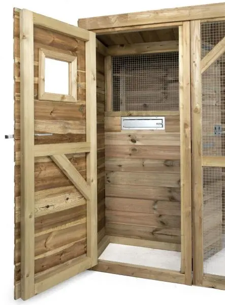 Het nachthok/sluis staat bij levering volledig in elkaar en hoeft daardoor enkel op zijn plaats gezet te worden. De vlucht wordt in panelen geleverd en is erg eenvoudig in elkaar te zetten.