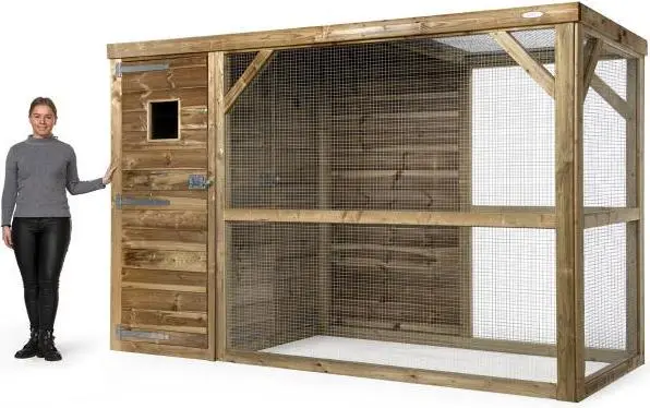 Deze prachtige, houten volière met binnenverblijf is een echte aanwinst voor in je tuin. Het verblijf is geproduceerd door gespecialiseerde vakmannen van Voldux die zorgen voor het beste resultaat. Er is bij dit verblijf gekozen voor gaas van 19 x 19 x 1,45 mm. Dit maakt het hok geschikt voor alle vogels.